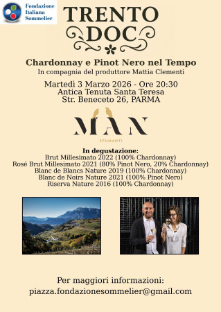 F.I.S. Emilia Romagna, sezione Parma, è lieta di invitarvi a una serata dedicata alla scoperta del TRENTO DOC, una delle massime espressioni italiane del Metodo Classico, simbolo di eleganza, precisione e profondo legame con il territorio montano.